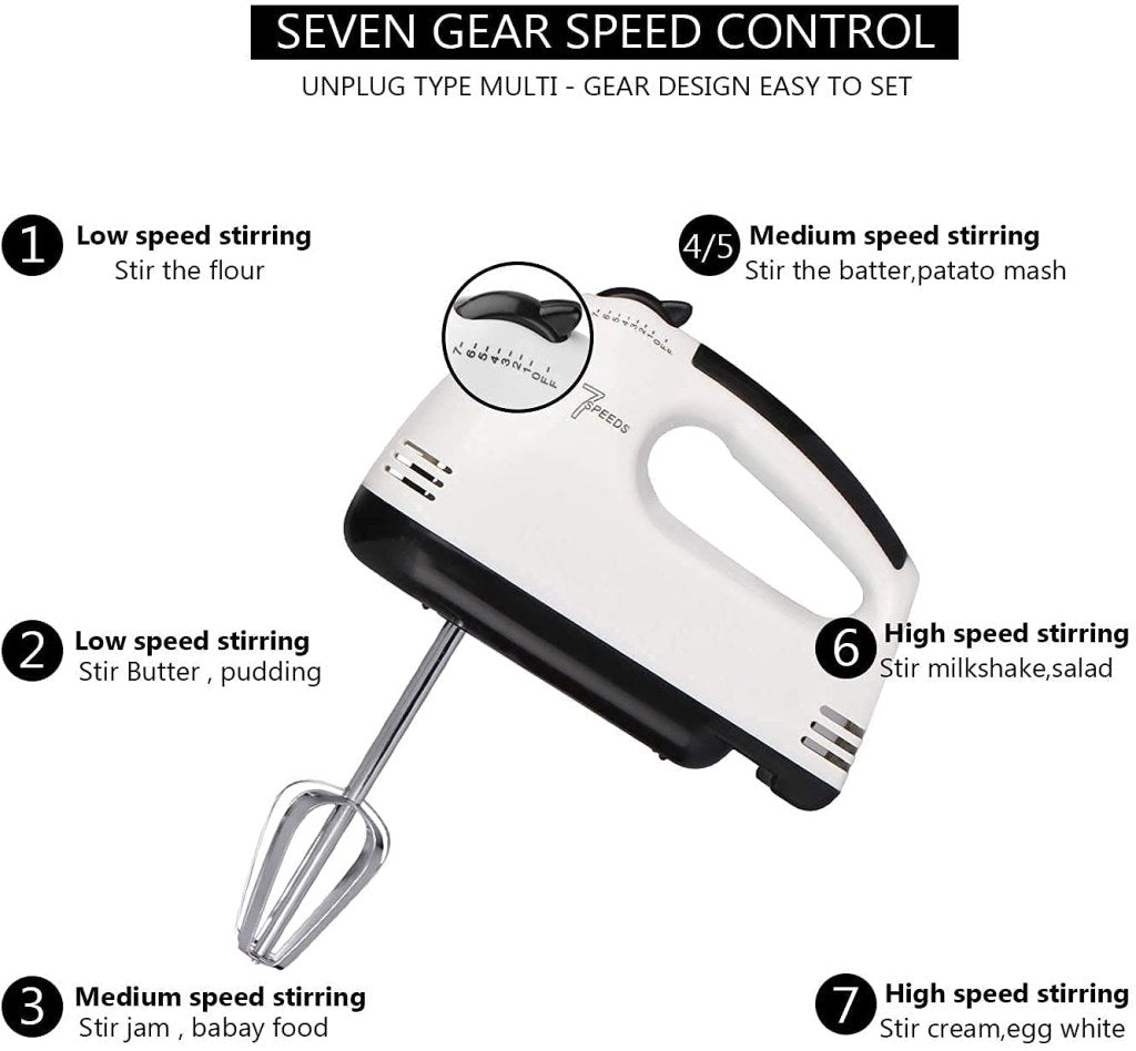 Electric Hand Egg Beater Coffee Milk Frother Cream Former Cappuccino Latte Maker Hand Mixer This Hand Mixer has got you covered. With different speeds to choose from on the mixer, you will have more control than ever to prepare your dish with precision, without wearing out your arm muscles as with traditional hand-mixing. The unit comes in white to suit all design styles and color palettes with two durable chrome-plated beaters for reliable, long-term use. After you’re done mixing, simply press the eject to release the beaters and toss them in the dishwasher for stress-free clean-up. Regardless of your culinary experience and confidence, you’ll find that This Speed Hand Mixer is easy to use. Bring it home today, get out the cookbooks and prepare to whip up something fabulous! It s is sure to become your new best friend in the kitchen.