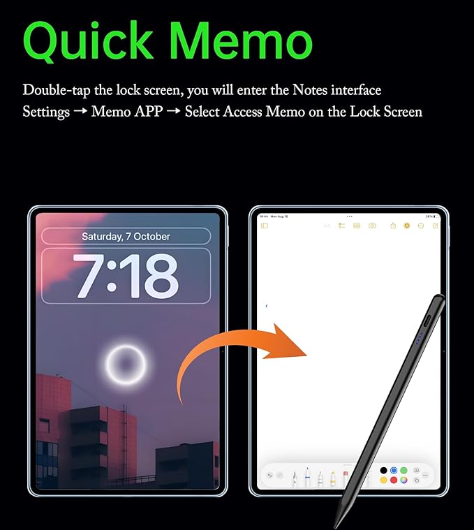 - 【Easy to Use 】Compatible with ipad air pencil has a smart touch switch, just Double tap the top of the stylist pen and ready to write or draw. NO driver or Bluetooth setting required. --Settings - Apple Pencil-Turn off the Apple pencil. (Settings- Notes )Turn off "Only Draw with Apple Pencil.Here are some helpful tips: ①Make sure the drawing stylus has enough electricity. ②The low-quality screen protector or toughened film results in bad electric conductivity.