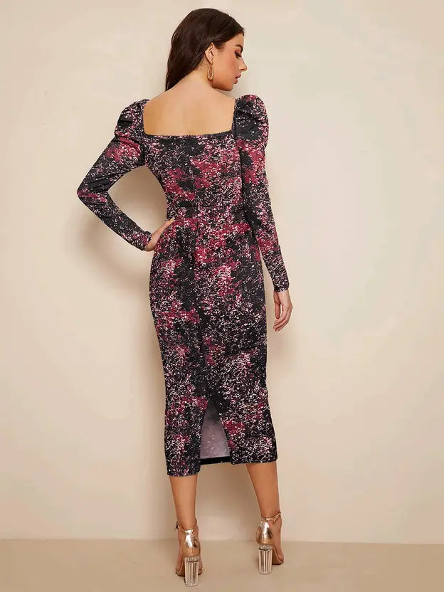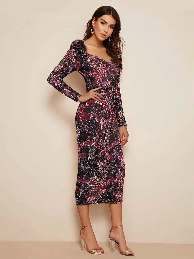 Elevate your style with our stunning Black and Maroon Printed Bodycon Dress featuring a charming Sweetheart Neck and on-trend Puff Sleeves. Crafted from luxurious Cotton Lycra material, this dress combines comfort with sophistication. The flattering sweetheart neckline accentuates the bust, while the bodycon silhouette hugs your curves for a captivating look. The eye-catching black and maroon print adds a touch of elegance and flair to your ensemble, perfect for both daytime adventures and evening soirees. Whether you're heading to a brunch date or a cocktail party, this dress ensures you make a statement with every step. Embrace the perfect blend of style and comfort with this must-have addition to your wardrobe.